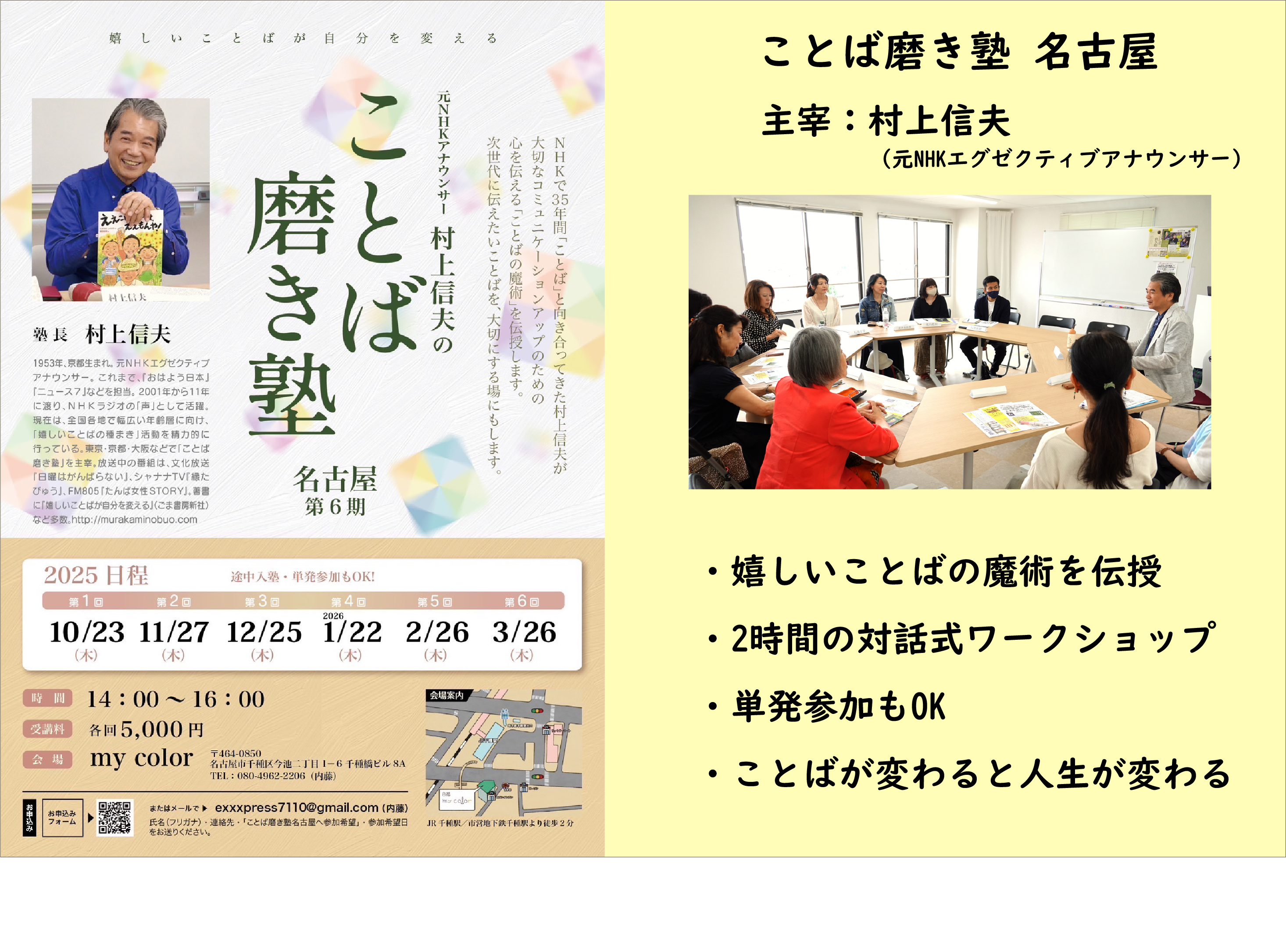 主催は元NHKエグゼクティブアナウンサー・村上信夫。単発参加もOKですので、一緒にことばを磨きましょう。